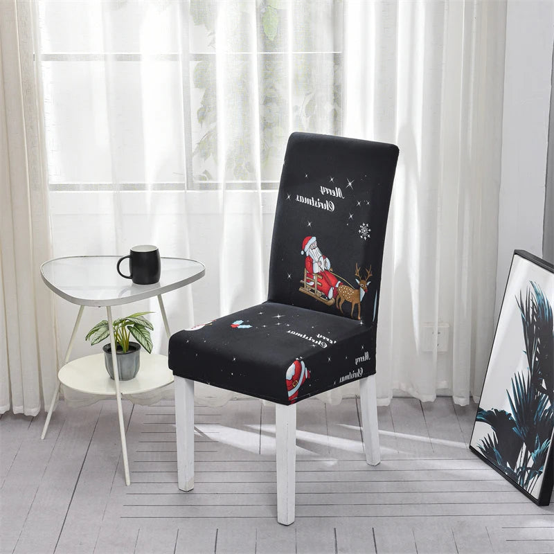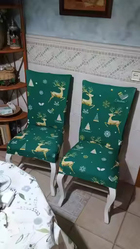 Unlike others, these stretch chair slipcovers combine fitted elastic, festive prints, and protective polyester-spandex for a cohesive, reusable holiday look.